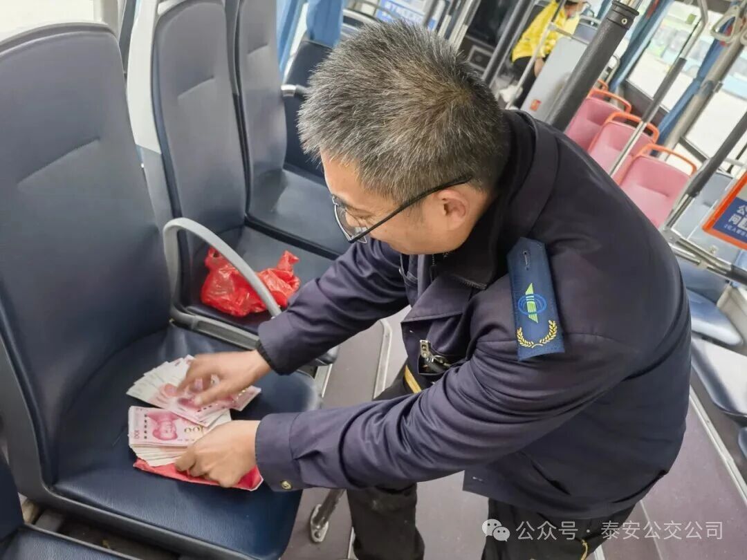 當(dāng)天下午,駕駛員公鵬如往常一般,駕駛魯J08381D號公交車從山東第一醫(yī)科大學(xué)老校站出發(fā),駛向南高新區(qū)公交停車場。14時(shí)02分,車輛行至泰山火車站廣場站點(diǎn)時(shí),一名剛上車的乘客在后排座位發(fā)現(xiàn)一個(gè)不起眼的紅色塑料袋,打開后竟看到一沓厚厚的百元現(xiàn)金。