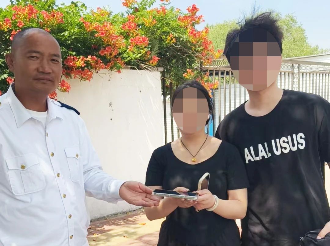 在第一分公司駐地,馬善泉拿著手機(jī),提前來(lái)到大門(mén)外站牌處等候。不久,游客乘坐16路車(chē)趕到,一邊跑一邊向馬善泉連聲道謝。經(jīng)核對(duì)確認(rèn),馬善泉將手機(jī)完好歸還失主。