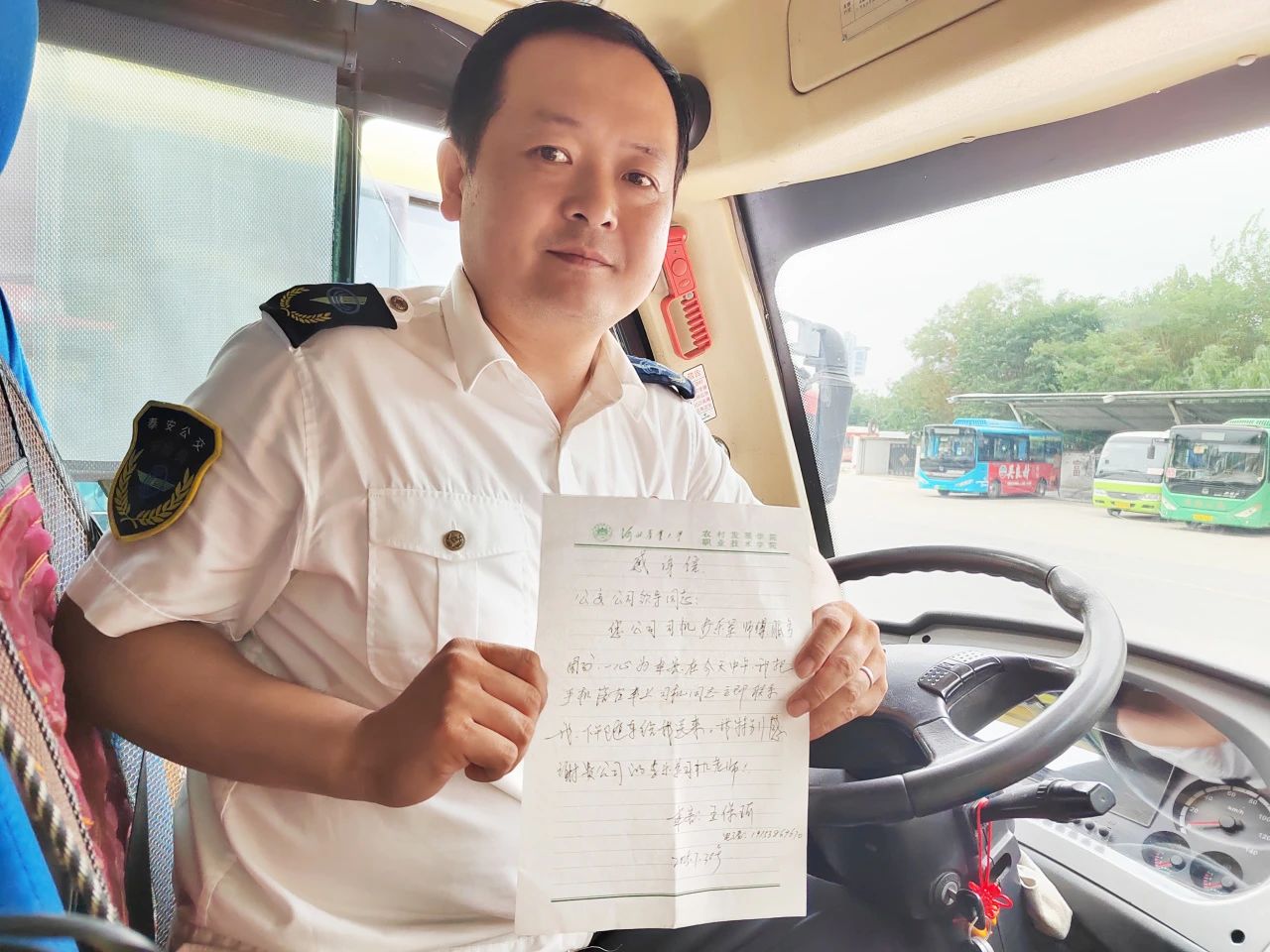 耐心安撫好孩子后,李樂軍引導(dǎo)孩子將電話交給家長,順利與王先生取得聯(lián)系。并在恒大城公交站將手機(jī)交給王先生。王先生從李樂軍手中接過手機(jī),激動得連聲道謝。為了表達(dá)這份感激,他特意寫下感謝信,親自送到第一分公司。