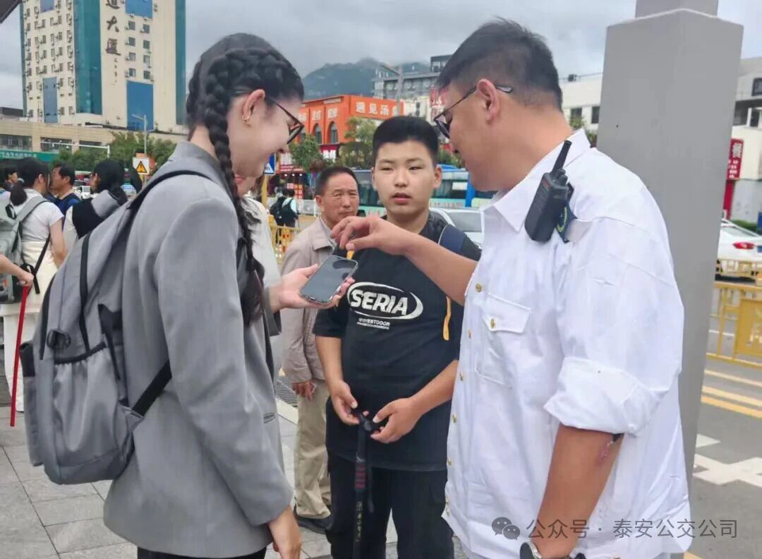 國(guó)慶假期的泰山火車(chē)站,人流熙攘間滿是出行的活力。10月3日上午10時(shí)許,泰安公交第二分公司副經(jīng)理尹燕群正堅(jiān)守在執(zhí)勤崗位上,疏導(dǎo)客流、解答疑問(wèn)、維護(hù)秩序。就在這時(shí),一位在公交站牌旁面露難色的外籍游客,引起了他的注意。