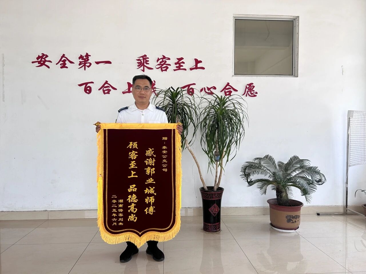 一面跨越千里的錦旗,承載著兩地溫情;一段平凡崗位的善舉,彰顯著城市文明。近日,泰安公交第一分公司收到湖南游客劉女士寄來的錦旗,字里行間滿是對4路車駕駛員郭業(yè)城的誠摯謝意。這個發(fā)生在車廂里的暖心故事,以最質(zhì)樸的方式,成為泰安城市文明的鮮活注腳。