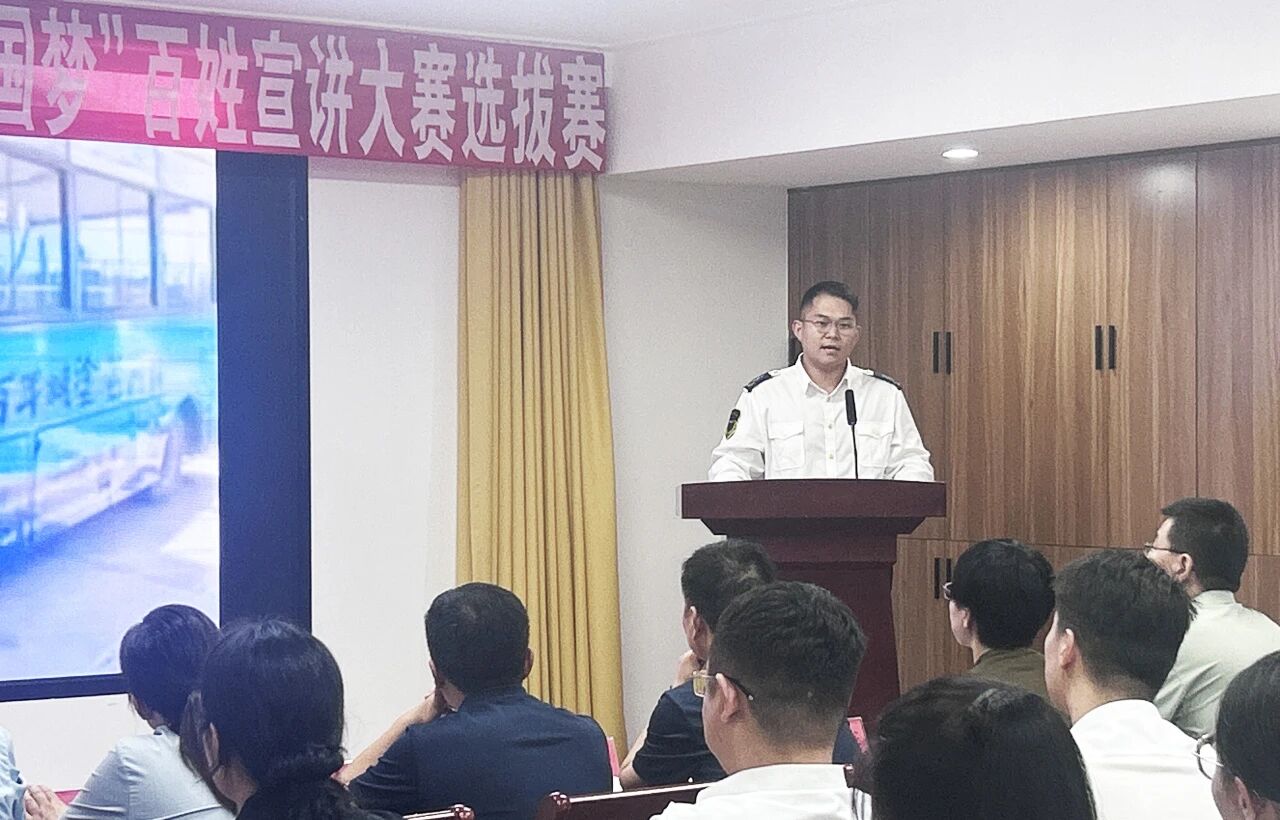 接著,他分享了1路駕駛員律發(fā)彬深夜“暖心擺渡”錯(cuò)過(guò)末班車(chē)的游客和10 路駕駛員張南南勇救起火三輪車(chē)的故事。“我們開(kāi)的是十米公交,裝的卻是整個(gè)城市的溫度。” 周虎表示,公交人用安全駕駛詮釋“敬業(yè)”,用互助幫扶傳遞 “友善”,用每一次停靠踐行“文明”“和諧”,讓車(chē)廂成為傳遞溫暖的“文明專列”。他的宣講既有生活溫度,又有實(shí)踐厚度,讓聽(tīng)眾看到了平凡崗位如何書(shū)寫(xiě)核心價(jià)值觀的生動(dòng)答卷。